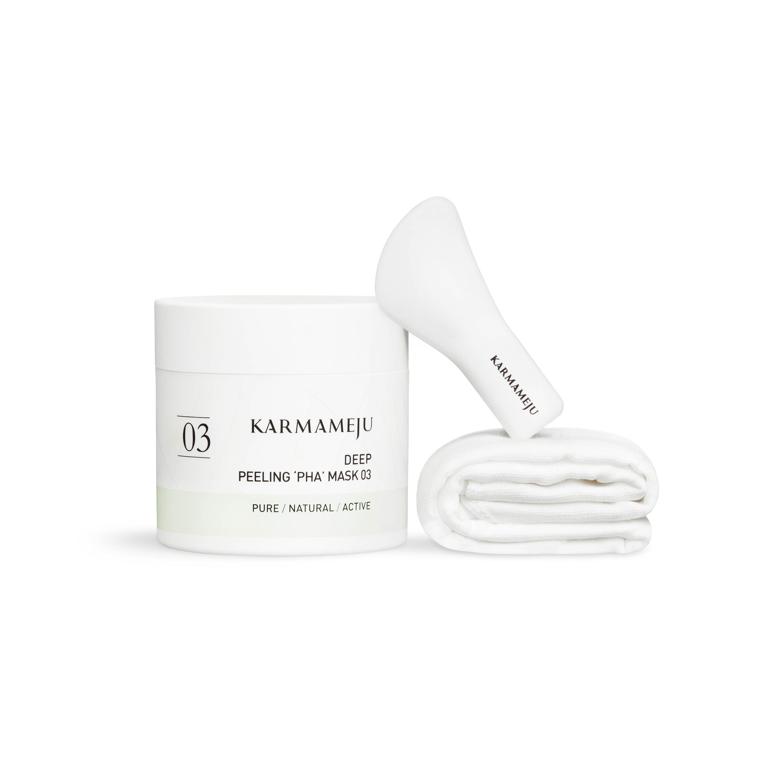 Ansigtsmasken er i sampak med vores 100% økologiske, lette musselinvaskeklud, der er det ideelle ”redskab” til skånsom og let afrensning af masken. Sampakken inkluderer også vores specielt udviklede Karmameju-spatula, der sikrer optimal påføring af masken og mindst muligt produktspild.